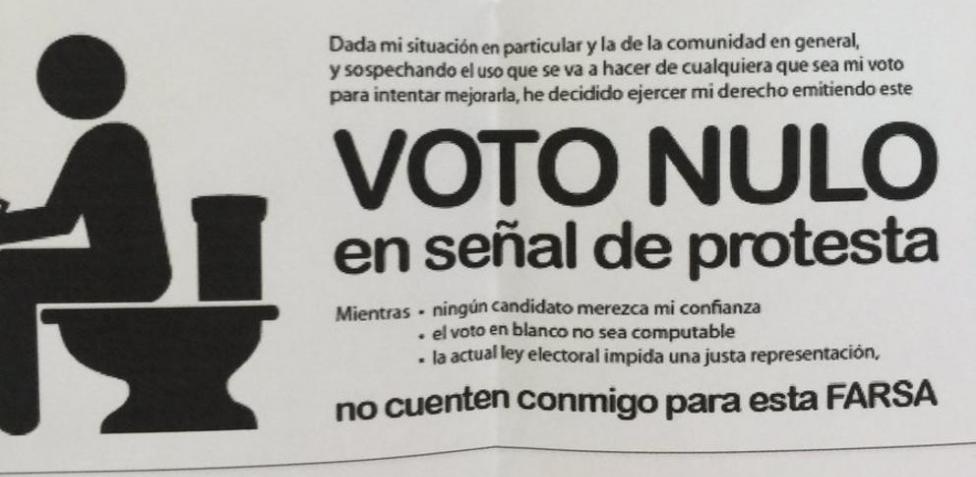 Un histórico aluvión de votos nulos, con casi 2 millones, en los últimos comicios ha puesto en evidencia el descontento de la población . Se cuenta como voto nulo el realizado con una marca diferente a un aspa (x) o cruz (+); El voto nulo es un voto mal realizado en una elección, al punto que acarrea su nulidad. Da para efectos de asignaciones de prerrogativas a los . No es lo mismo votar en blanco o abtenerse o que emitir un voto nulo.